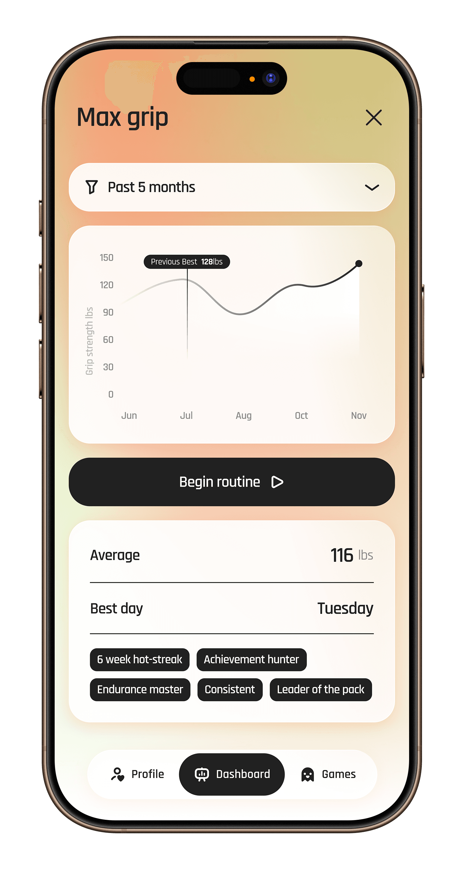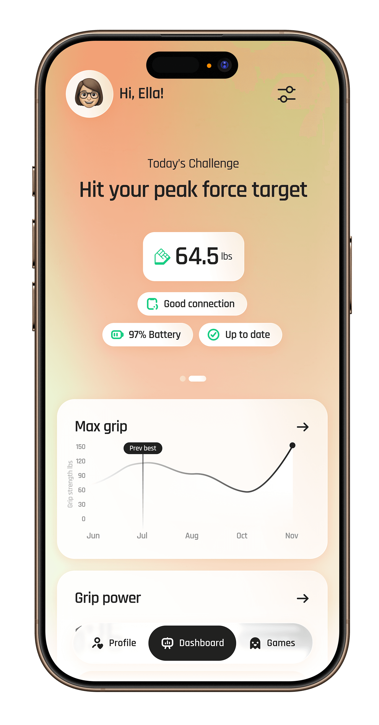 Compete against your best and others worldwide in mobile games driven by your grip.